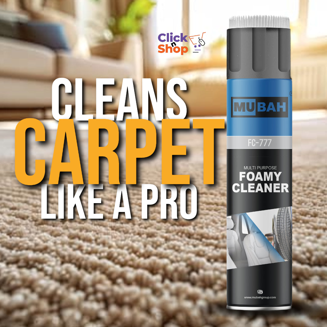 MUBAH Multi-Purpose Foamy Cleaner is especially effective for cleaning vinyl and fabric upholstery, floor mats, carpets, and leather. Perfect for cleaning any washable or painted surface. Deep cleaning foam action lifts dirt and helps restore true color and appearance. FOR HOME: It is excellent for cleaning appliances, Formica, bathroom fixtures, asphalt or ceramic tile, painted walls, wall coverings, screens, window fans, porcelain, painted wood, or metal. Removes soils and stains from vinyl or fabric upholstery and from carpets